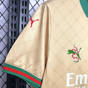 Diese exklusive Partnerschaft für die Saison 2024/2025 symbolisiert die nahtlose Verschmelzung von Sport und High Fashion. Das AC Mailand x Gucci 2024/2025 Trikot ist mit den emblematischen Logos von Gucci auf den Ärmeln und dem Kragen verziert und setzt damit ein luxuriöses Modestatement, das das fußballerische Erbe von Mailand ehrt. Das Design repräsentiert nicht nur die stolze Geschichte des Vereins, sondern ist auch ein hervorstechendes Stück auf und neben dem Spielfeld im Jahr 2024/2025.