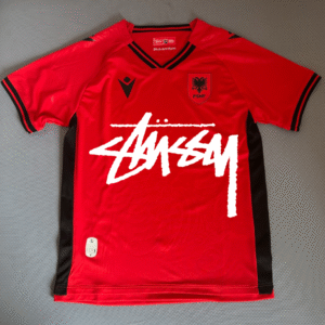 The Albania Stussy Concept Kit is a groundbreaking design that merges football passion with cutting-edge streetwear fashion. Created as a visionary concept, this jersey pays tribute to Albania’s rich cultural identity while reimagining it through Stussy’s urban-inspired aesthetic. With bold graphics, premium materials, and a modern athletic cut, it delivers both comfort and style for matchdays and everyday wear.