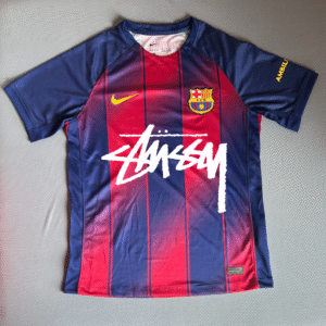 Designed for both functionality and fashion, the FC Barcelona x Stussy 2026 kit features a modern, athletic fit with durable construction to ensure long-lasting wear. Vibrant colors and unique design accents pay tribute to the club’s identity while giving the jersey a fresh, street-inspired edge. Perfect for fans who want to showcase their love for football and fashion, this Barcelona Stussy special edition shirt 2026 merges style and passion seamlessly.