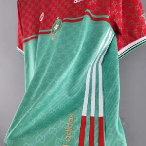 Introducing our exclusive collaboration between Morocco Maroc, and Gucci, a truly one-of-a-kind jersey available only on Xclusivejerseys.com. This masterpiece seamlessly blends the vibrant colors of Morocco’s green and red flag with Gucci’s iconic red and green design. The result is a visually stunning and culturally rich jersey that pays homage to Morocco’s heritage while incorporating the luxury and style synonymous with Gucci. Crafted with precision and attention to detail, this limited edition jersey is a must-have for those who appreciate the fusion of high fashion and national pride. Exclusively available on Xclusivejerseys.com, this unique piece captures the essence of both worlds in a fashion-forward and collectible design.