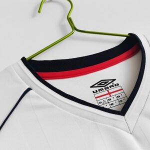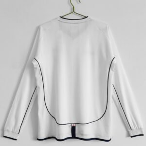 The 2002 England home long-sleeve jersey is a classic piece that represents an unforgettable era for English football. Featuring a crisp white design with bold red accents, this kit reflects the pride and passion of the national team. Its iconic style captures the essence of England’s footballing heritage, making it a timeless favorite among fans.