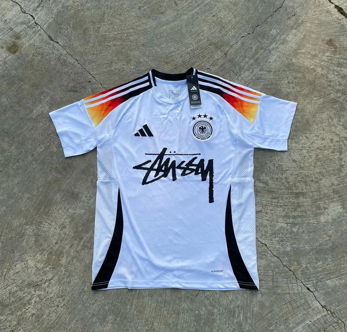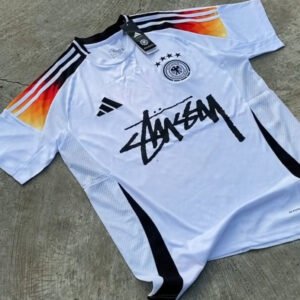 Introducing the Germany X Stussy Special Edition Jersey, an extraordinary collaboration that combines the rich footballing heritage of the German national team with Stussy’s cutting-edge streetwear design. Exclusively available on our website, Xclusive Jerseys, this limited edition jersey is a must-have for fans of both German football and innovative fashion. The Germany X Stussy Special Edition Jersey represents a perfect fusion of tradition and modernity, featuring a unique design that elevates football apparel to new heights.