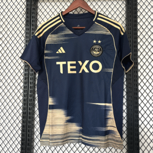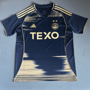 The Aberdeen 2025/2026 Away Jersey delivers a bold and contemporary design while honoring the proud traditions of the Dons. This season’s kit features a striking black base with deep red accents and subtle granite-inspired textures—paying tribute to the city’s nickname, the “Granite City.” The refined detailing around the collar and sleeves gives this away shirt a sharp, modern look, making it one of the most stylish kits in the Scottish Premiership.
