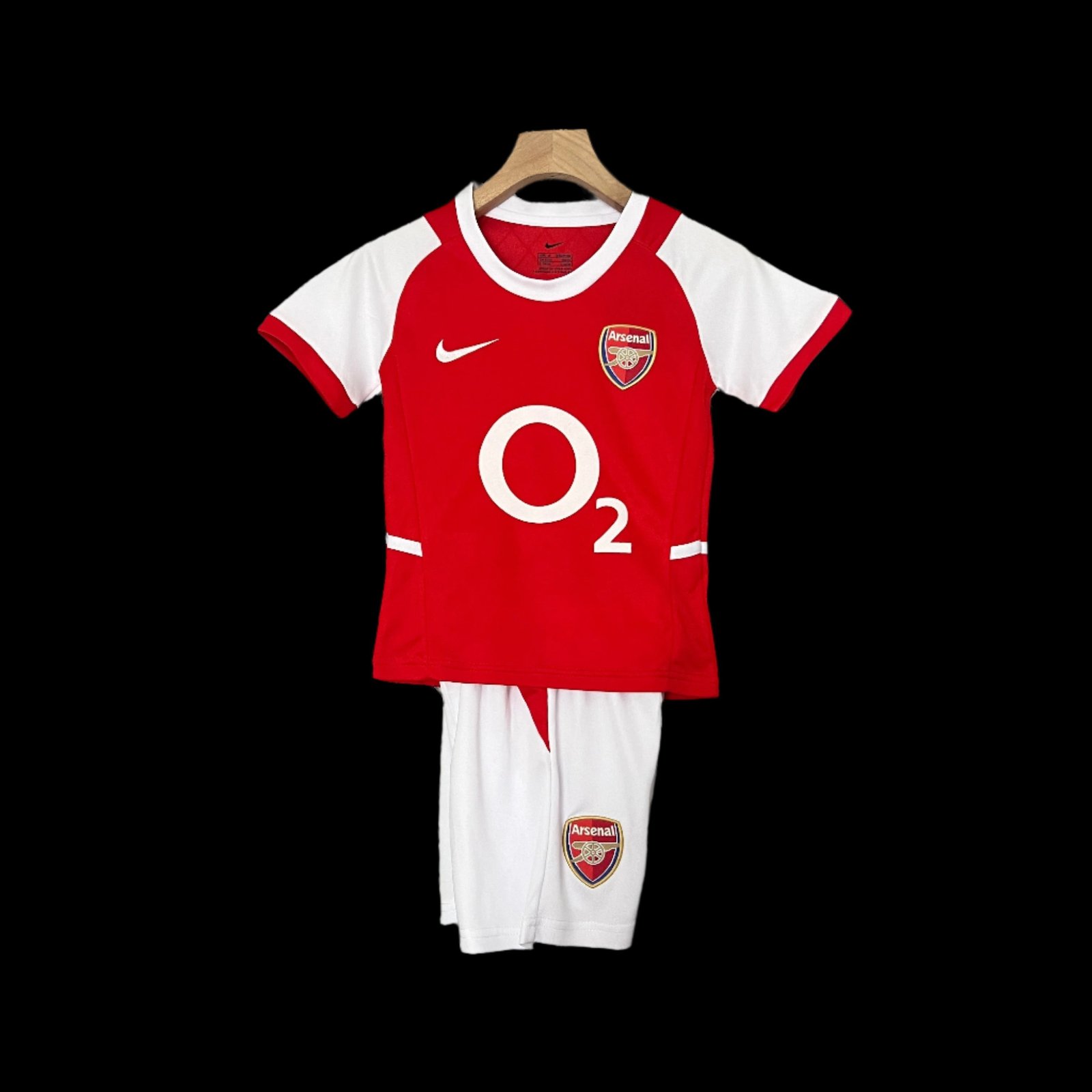 This Arsenal 2002–2004 Kids Retro Jersey is a tribute to the iconic “Invincibles” era, featuring the classic red body, white sleeves, and the original O2 sponsor—just like the one worn by Henry and Vieira.